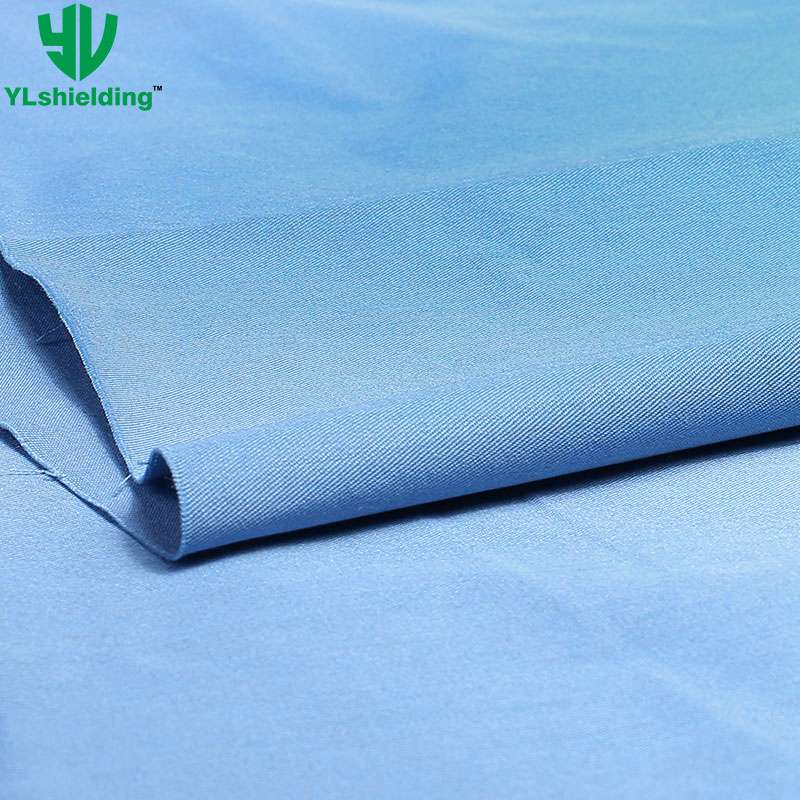 Double-faced stainless steel fiber & cotton woven fabric is made with 30% stainless steel fiber (70% CVC) on one side and 100% cotton on the other side. So it has conductive / shielding performance as well as actual textile characteristics. With a much cheaper price than silver fabrics and, however, more durable, this fabric is usually used for protection against high frequency electromagnetic radiation, with good screening attenuation even at high frequencies, and can also be grounded for shielding low frequency electric fields.